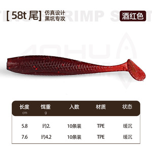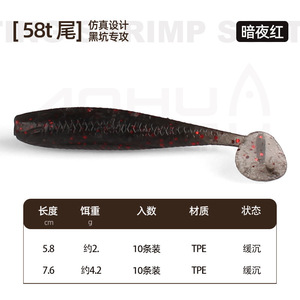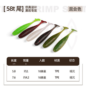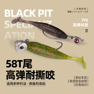 58T テールルアーソフトベイト ブラックヒット カンナ バス フィッシング 小虫 スローシンキング ルートフィッシング Tテール ロールテール リードヘッドフック フィッシングベイト
