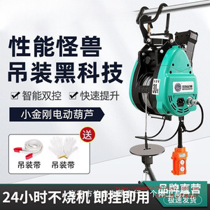 リトルキングコング電気ホイスト 220V 家庭用吊り下げ二穴昇降クレーンエアコンワイヤーロープポータブル新モデル