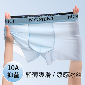 夏超薄型速乾アイスシルクメンズボクサーブリーフ 10A マルベリーシルク抗菌クロッチメンズシームレスボクサーパンツ