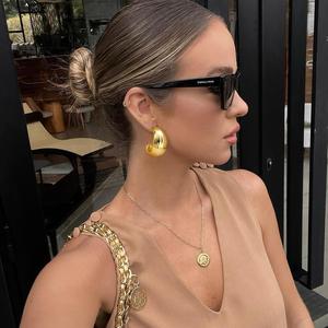 跨境热销欧美创意简约几何菱形镂空耳环双层高级设计感气女质耳环