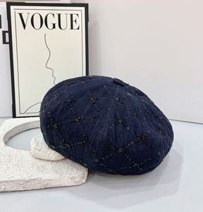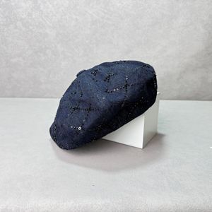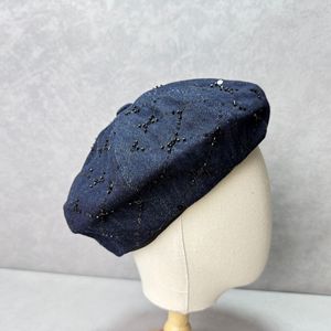 卸売 25 秋の新ハイエンド品質ヘビーデューティブライトダイヤモンドデニムスパンコールベレー帽レディース韓国スタイル帽子トレンド