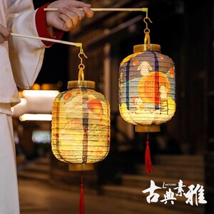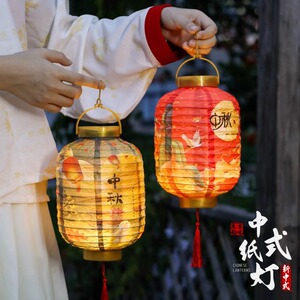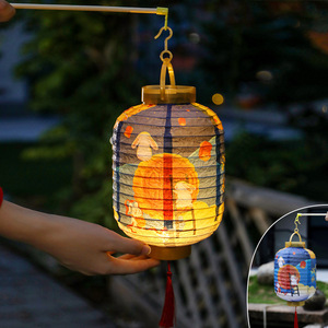 2025 中秋節折りたたみ提灯子供用ポータブル古代風漫画ウサギ提灯新年装飾雰囲気アレンジメント