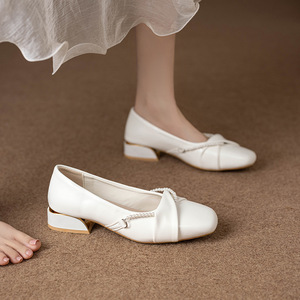 女性用のファッショナブルなローヒールの靴、2025年春と夏、スカート付き、フレンチイブニングスタイル、3cmの小さなヒールの靴