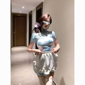 小众可爱少女设计感小清新蕾丝拼接蝴蝶结吊带上衣牛仔短裤两件套