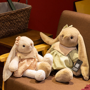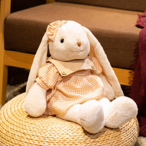 甜美百合兔毛绒玩具女孩生日礼物格子裙垂耳兔睡觉布娃娃兑换批发