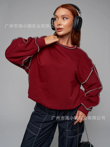 2025 素材フォーミュラ春と秋アメリカンレトロデザインマルチジッパーステッチデコンストラクトラウンドネックスウェットシャツ女性のトップ