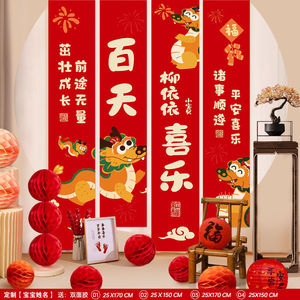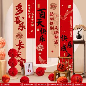 龙宝宝满月百天百日宴场景布置工厂批发新中式横幅男女孩装饰背景