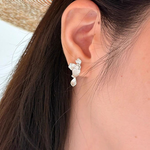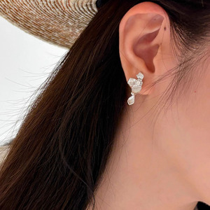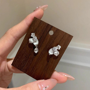Xiaohongshuの人気スタイル、ハイエンドのブラッシュド非対称輝くダイヤモンドファッションクチナシの花びらイヤリングドロップシッピング