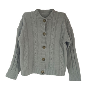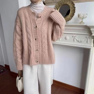 秋冬レディース半袖韓国風ツイストニットカーディガンレトロラウンドネックレイジーソリッドカラートップファッショナブルで多用途