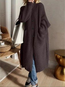 クロスボーダーヨーロッパとアメリカンスタイルの女性用ミドル丈ニットカーディガン2025秋冬スタイル厚みのある大型セータージャケット卸売