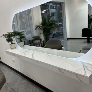 理发店专用镜台大理石台面实木台面带抽屉染烫区一体柜子壁挂台面