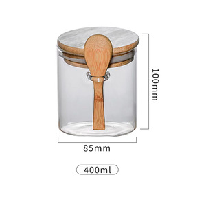 カスタマイズされた穀物密封瓶、透明高ホウケイ酸ガラス保存瓶、キッチン調味料瓶、スプーン付き丸型保存瓶