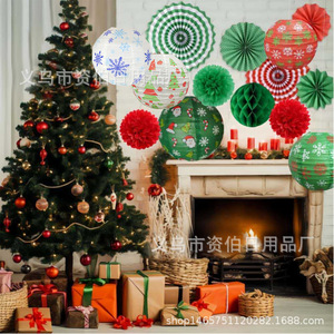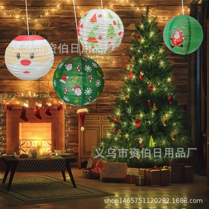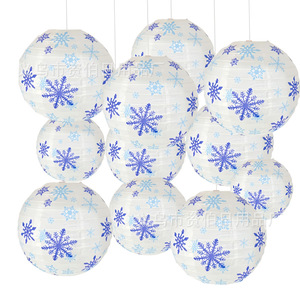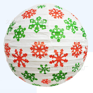 圣诞节纸灯笼 雪花圣诞树灯笼 30CM圆形灯笼酒吧商场场地布置道具