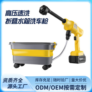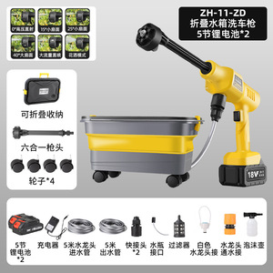 折りたたみ水タンクイエロー洗車ガン---[15セル、2バッテリー、1充電]