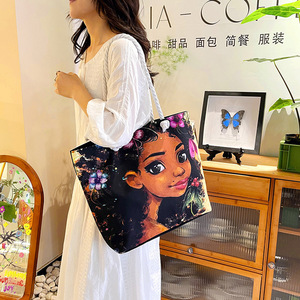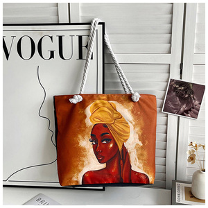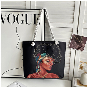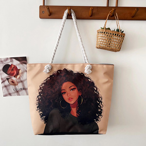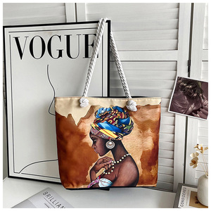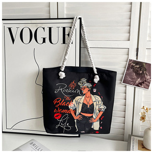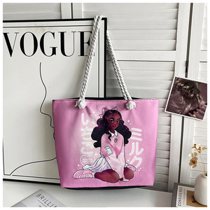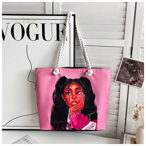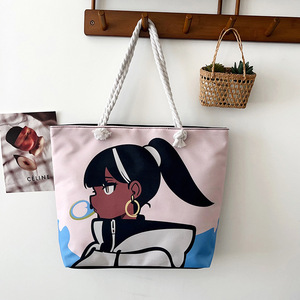 新しいクロスボーダースタイルプリント粗いロープビーチバッグ多用途トートバッグ女性のポータブルショッピングバッグクリエイティブ女性