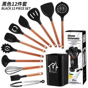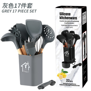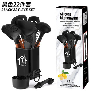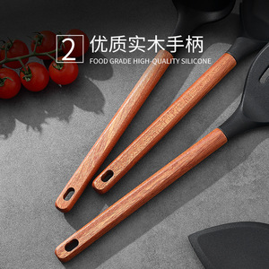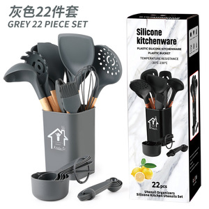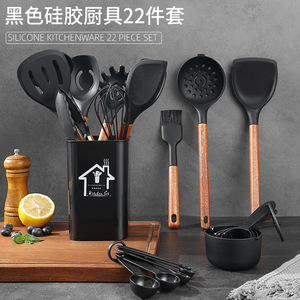 国境を越えた高品質のシリコンキッチン用品スパチュラとスプーンセット木製ハンドルシリコンスパチュラ食品グレード22ピースシリコンザルセット
