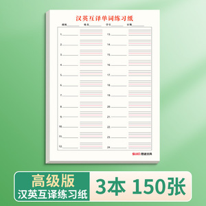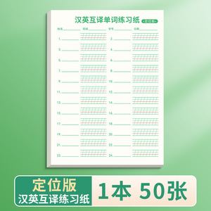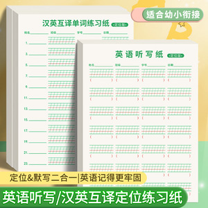 英語のディクテーション用紙、位置決め用紙、英中・中英訳単語練習用紙、毎日の単語練習用紙