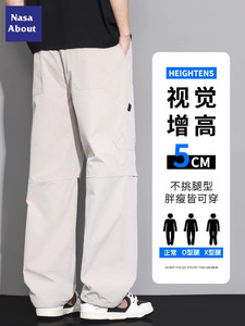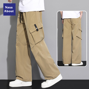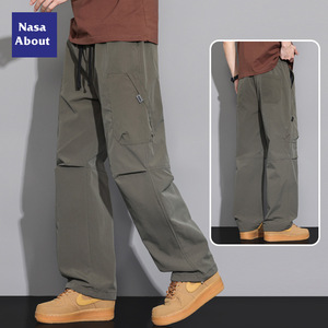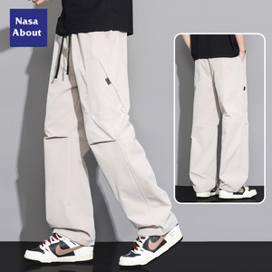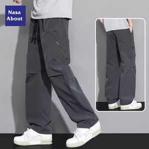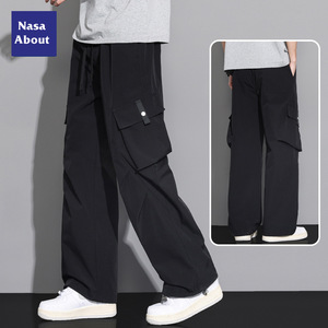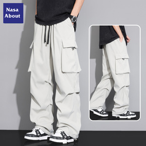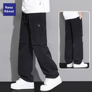 NASA アイスシルク空挺部隊オーバーオールメンズ夏薄いルーズストレートメンズパンツ夏ホット大きいサイズカジュアルパンツ