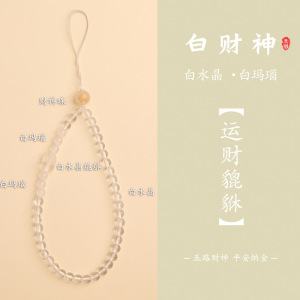 白瑪瑙ホワイトクリスタル貔貅携帯電話チェーン富の神ビーズショート落下防止携帯電話ケースペンダント天然水晶ペンダント