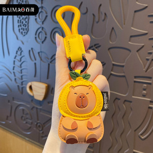 漫画レザーフルーツヘッドギアカピバラキーチェーンペンダントかわいい白クマ愛キーチェーンバッグペンダント