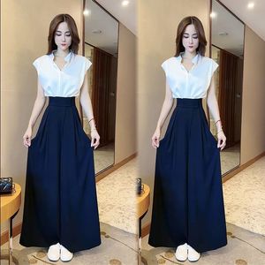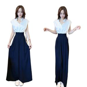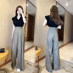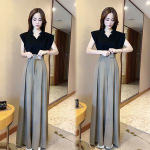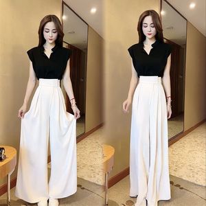 サマースーツ 2025 新しい女性のカジュアルインターネットセレブストリート年齢軽減ノースリーブトッププリーツワイドレッグパンツとスカートの 2 点セット