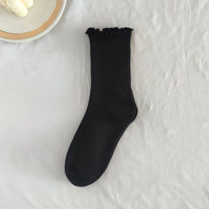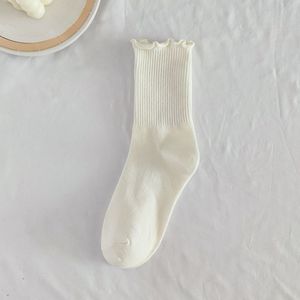 クリームホワイトのレース付きカジュアルソックス、ミドル丈、秋冬用、純綿、日本風、インスタ映え、フリル付き、JK風、春秋用ショートソックス