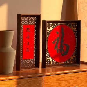 木质中式镂空手写空白书法相框装饰红色洒金纸双面立体画摆件摆台