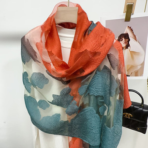 ショールスカーフ、ハイエンドの新しいグラデーションナショナルスタイルフラワーロングシルクスカーフ、ガーゼスカーフ、多用途日焼け止めショール卸売