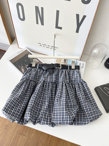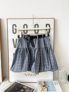 無料ベルト露出防止カボチャのつぼみスカート夏の学生チェック柄ケーキスカートハイウエストスカート女性 6012