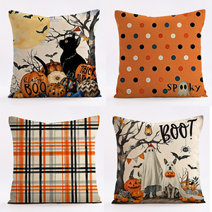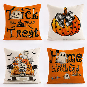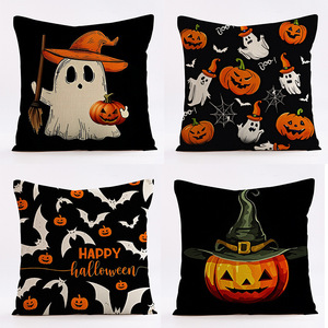 クロスボーダーハロウィン枕カバーホラー魔女パターン家族ホリデーデコレーションリビングルームソファ枕カバー4点セット