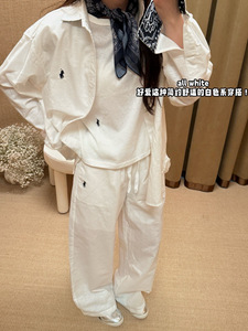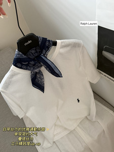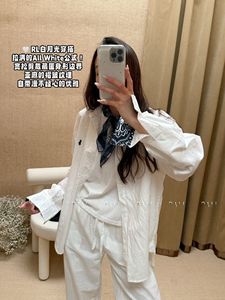 Yuanbiao Raff RL ポニーウォーズ刺繍リネンコットンリネン通気性シャツラウンドネック半袖シンプルなズボン女性用