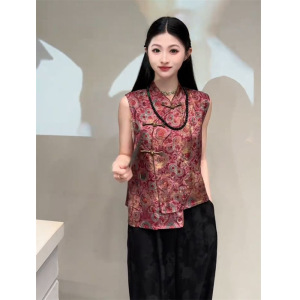中国風の女性用ベスト 2025 夏の新しいレトロなカラーノースリーブスタンドカラー年齢を軽減する気質のハイエンドトップ