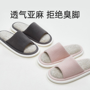 优调亚麻厚底夏季凉拖鞋女春秋居家情侣室内木地板四季棉麻拖鞋男