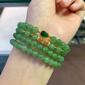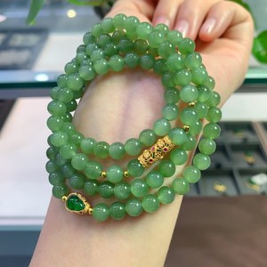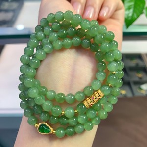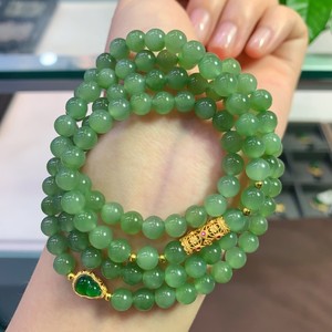 天然和田玉碧玉冰晴绿项链搭配s925银 Diy福禄时尚佳人四圈玉手串