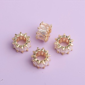銅メッキ 14K ゴールドメッキ色保持スクエアジルコンバレルビーズ大穴パスビーズ DIY ブレスレットネックレスビーズ