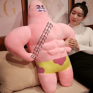 マッスルスポンジボブパイプラインぬいぐるみ人形かわいい腹筋ベッドおやすみ人形無料面白い人形
