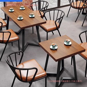 インダストリアルスタイルのダイニングテーブルと椅子無垢材レジャーバー鍋レストランテーブルと椅子の組み合わせレトロバーベキューレストランレストラン小さなラウンドテーブル