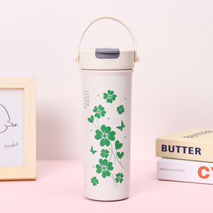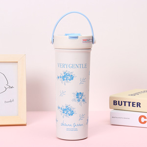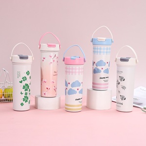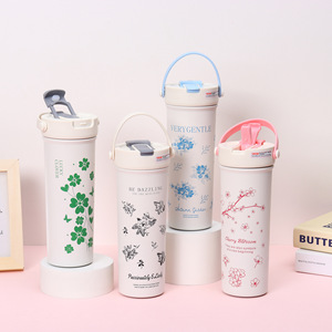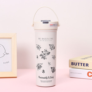 新しいポータブルダブルドリンクコーヒーカップ二層ステンレス鋼断熱カップ大容量ポータブルかわいいシンプルなストローカップ