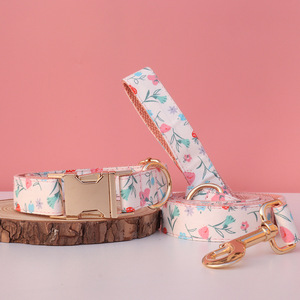 多色花朵狗狗项圈蝴蝶结牵引绳可刻字金属扣脖圈宠物小中大型犬