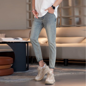セメントグレー薄いサマーパンツメンズ2025新作ジーンズメンズストレッチメンズ9点