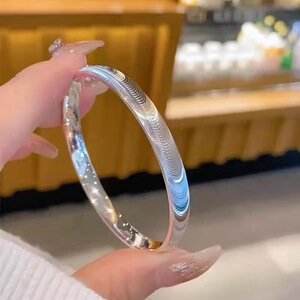 足银9999猫眼拉丝银手镯女纯银实心时尚百搭银镯子小众轻奢送女友