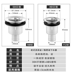40/50拖把池下水器洗衣池去水器拖布池下水头提拉去水头德式
