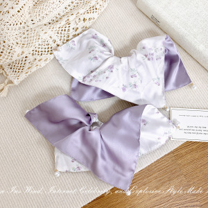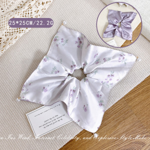 純粋な欲望紫花柄スクエアスカーフヘアネクタイ高弾性ポニーテールヘアネクタイ韓国ヘアアクセサリーハイエンドヘアロープヘッドフラワー