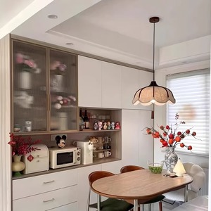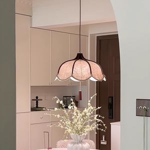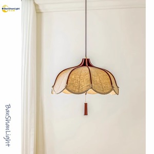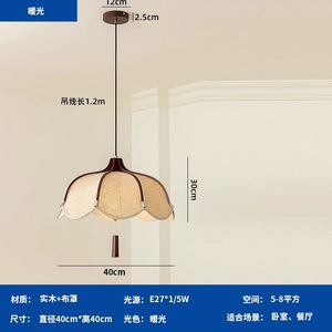 中古实木布艺吊灯主卧室侘寂风复古茶室艺术创意餐桌餐厅吧台灯具