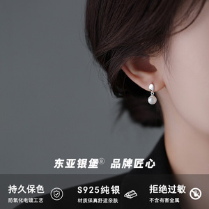 S925 スターリングシルバーパールイヤリング女性用日本と韓国フレンチライト高級イヤリングニッチデザインハイエンドトレンディイヤリングガールフレンド用