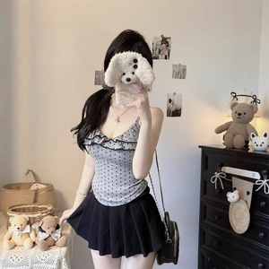 甘辛ピュアラブスタイルレース花柄キャミソールとレースサスペンダー