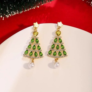 クリスマスイヤリング、秋冬の優しいデザイン、クリスマスツリーイヤリング、冬のニッチイヤリング、高級グリーンイヤリング