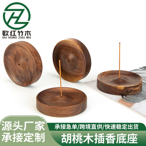 黑胡桃线香底座实木香线插器家居室内线香底座蝉意香托香线底座