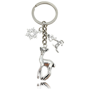 【古代シルバー クリスマス サンタクロース スノーフレーク ニホンジカ キーホルダー】3x7.9cm-8.1g-ER1803