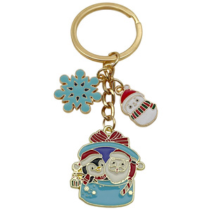 【レイクブルークリスマスサンタクロースとペンギンスノーフレーク雪だるまキーホルダー】3x8.6cm-11.4g-ER1779